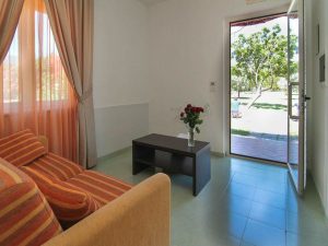 Le 232 camere sono dotate di servizi privati con doccia e asciugacapelli, aria condizionata, mini-frigo, cassaforte, tv. Si dividono in: Comfort (doppie, triple e quadruple con letto a castello), Suite Garden (fino a 5 posti letto, composte da camera matrimoniale e soggiorno con divano letto matrimoniale o letto a castello, patio o terrazza attrezzata) e camere Suite Laguna (fino a 4 posti letto, composte come le Suite Garden, tutte con patio attrezzato e accesso diretto alla piscina Laguna).
