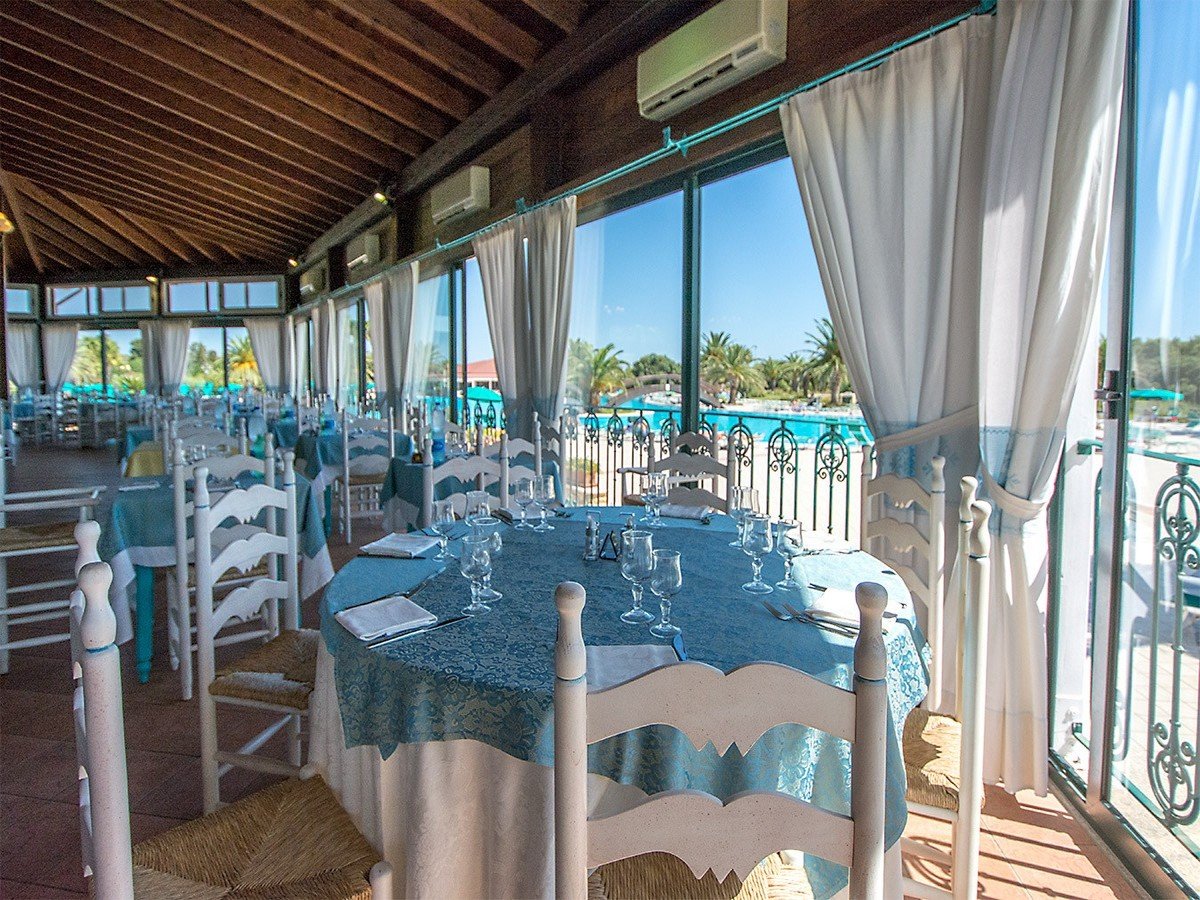 Il Marina Resort dispone di un ristorante a più sale, tra cui una esterna verandata. Il servizio offre giornalmente un’ampia varietà gastronomica in un’atmosfera serena e informale con servizio a buffet. La prima colazione, oltre alla consueta caffetteria, propone un’ampia selezione di alimenti dolci e salati. Per il pranzo e la cena, la ricca e variegata proposta gastronomica comprende specialità e piatti della cucina tipica sarda e della cucina nazionale; acqua minerale naturale o frizzante, vino sardo della casa bianco o rosso sono inclusi ai pasti. Durante la settimana sono previste due serate a tema; una sarda, con pietanze tipiche regionali e una “del pescatore” a base di pesce (pietanze alternative a base di carne e/o vegetariane sono sempre presenti). Il ristorante non offre un menù vegetariano e/o vegano dedicato; la cucina potrebbe proporre un piatto che soddisfi la dieta seguita se il buffet non prevedesse nessuna opzione corrispondente a tale scelta alimentare (es. pasta con verdure). Intolleranze: Per gli ospiti con intolleranze alimentari (quali al glutine o al lattosio) sono disponibili prodotti base confezionati (pane, pasta, biscotti, ecc.). È sempre richiesta la segnalazione di eventuali intolleranze alimentari in fase di prenotazione e al check-in. Il Club Hotel non dispone di un’area separata per la cucina senza glutine; pertanto, non può essere garantita l’assenza di contaminazione per i prodotti non confezionati.