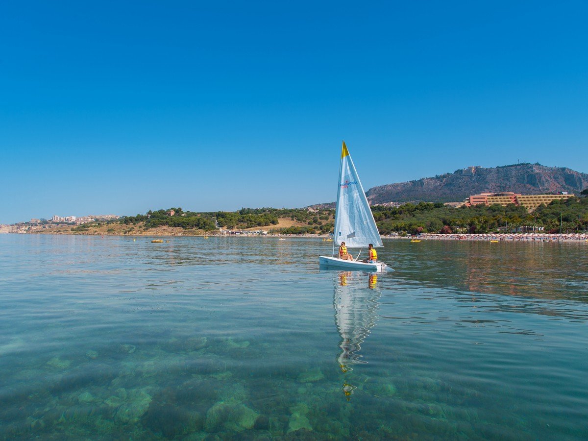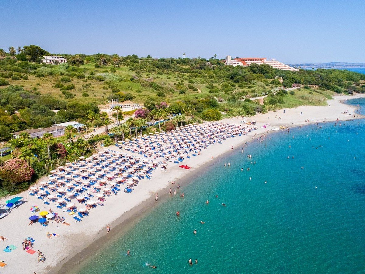 Spiaggia: Una meravigliosa spiaggia di sabbia fine, attrezzata con lettini e ombrelloni, è raggiungibile percorrendo i suggestivi sentieri che attraversano la rigogliosa vegetazione mediterranea o, in alternativa, utilizzando il comodo servizio gratuito di navetta, effettuato con un trenino, tutto il giorno con partenze dalla fermata antistante l’albergo ogni 20 minuti circa.