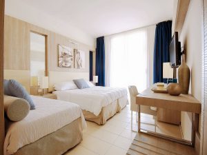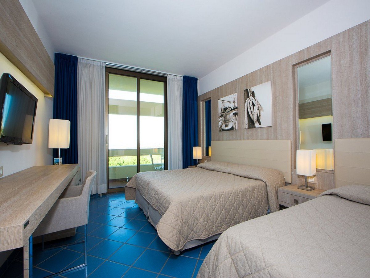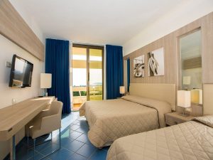 Distribuite su 3 piani, le 207 camere sono confortevoli, funzionali, arredate in stile moderno e dotate di comfort all’avanguardia. Trascorri una vacanza rilassante immerso nel verde, soggiornando a pochi minuti da un lungo tratto di spiaggia di sabbia dorata. Camere Standard (30 mq): sono dotate di servizi privati, Aria condizionata, connessione wi-fi, telefono, minifrigo, TV satellitare e cassaforte. Si suddividono in doppie, triple, quadruple e quintuple (sistemate in due camere attigue o comunicanti, secondo disponibilità e con relativa promozione). Superior (30 mq): Set bagno base, aria condizionata, connessione wi-fi, telefono, mini-frigo, TV satellitare e cassaforte. Superior Sea View (30 mq): Set bagno base, aria condizionata, connessione wi-fi, telefono, mini-frigo, TV satellitare e cassaforte.