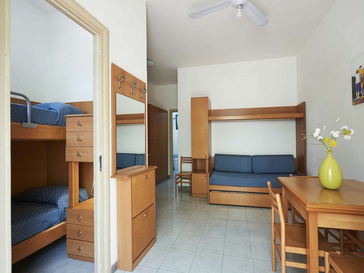 APPARTAMENTO BILO: appartamenti situati sia al piano terra (con supplemento) che al primo piano (senza ascensore), con angolo cottura e doppio ambiente da 2 a 6 posti letto, con piccola camera matrimoniale e divano letto nel soggiorno, sia estraibile che a castello.