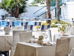HBB (mezza pensione dal 24 maggio al 28 settembre) comprende: CENA a buffet presso l’ottimo ristorante del villaggio con bevande incluse ai pasti (acqua, vino e soft drink in dispenser inclusi) con tre cene a tema (tipica, italiana e internazionale). Offre piatti tipici della cucina pugliese, nazionale e internazionale, con ampia scelta di antipasti e contorni, primi e secondi, frutta e dessert. Tavolo assegnato. SPECIALE CELIACI: si mettono a disposizione i prodotti base (pane, pasta e biscotti, cornetti a colazione e dessert). Si prega di contattare direttamente lo chef. Non sono garantiti i prodotti per altre intolleranze. BIBERONERIA all’interno del ristorante, disponibile negli orari di apertura dello stesso, attrezzata con i seguenti alimenti freschi: brodo vegetale senza sale, passato di verdure, passato di legumi, crema di riso, crema di mais e tapioca, salsa di pomodoro senza sale, latte intero o parzialmente scremato, formaggini, formaggio grattugiato, yogurt, fette biscottate, miele, semolino, succhi di frutta, e vari tipi di pastina per bambini.