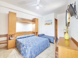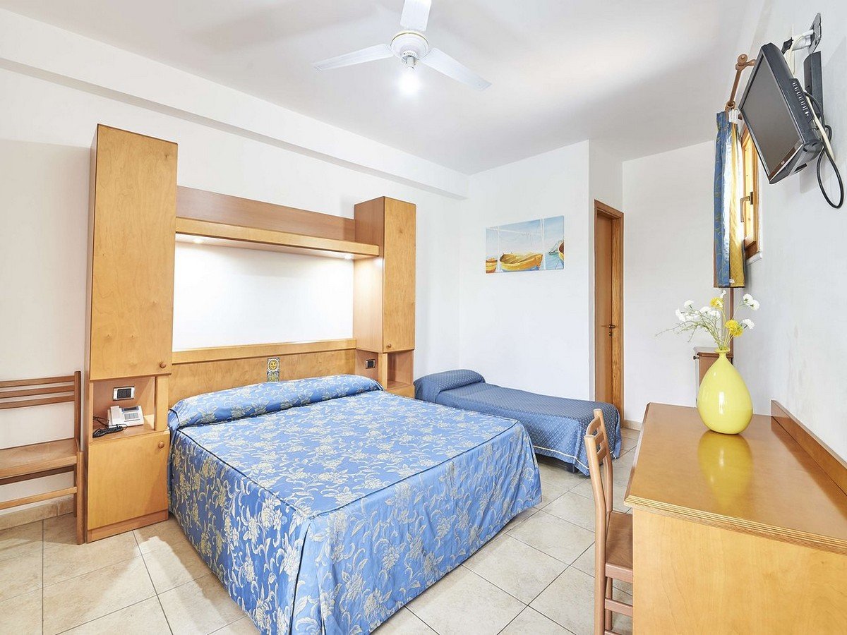 CAMERA COMFORT: situate nel corpo centrale del Villaggio (con ascensore), unico ambiente da 2 a 4 posti letto, con letto matrimoniale e divano letto a castello.