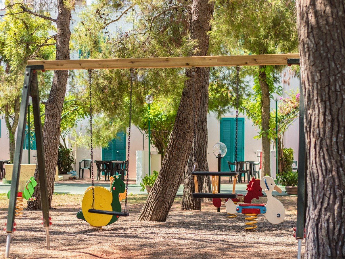All’hotel è stato attribuito da parte della regione Puglia il marchio “Puglia loves family” che prevede alcuni servizi gratuiti per famiglie come fasciatoio, scalda biberon, riduttore sedile wc, cestino igienico per pannolini, seggiolone e vaschetta per bagnetto. Su richiesta al momento del check-in. WI-FI nella hall, sala TV, percorso fitness in pineta, Nello Land: parco giochi per bambini in pineta, culla gratuita, su richiesta al momento della prenotazione (possibilità di aggiungerla in vano soggiorno in appartamento Bilo) piscina esterna per adulti e per bambini attrezzata con ombrelloni e lettini, spiaggia libera a ca 500 metri dall’Hotel, spiaggia privata con navetta dal 31 maggio al 14 giugno e dal 13 al 27 settembre, animazione diurna e serale con mini club e junior club dal 31 maggio al 14 giugno e dal 13 al 27 settembre, campi sportivi (eccetto uso notturno): campo da tennis, 2 campi da bocce, campo polivalente da calcetto/pallavolo/tennis, ping-pong, parcheggio riservato recintato non custodito. ANIMAZIONE diurna e serale con giochi, spettacoli e tornei (dal 31 maggio al 27 settembre). MINI-CLUB e JUNIOR CLUB ad orari prestabiliti insieme alla nostra simpaticissima mascotte Nello il Gabbianello (dal 31 maggio al 27 settembre).