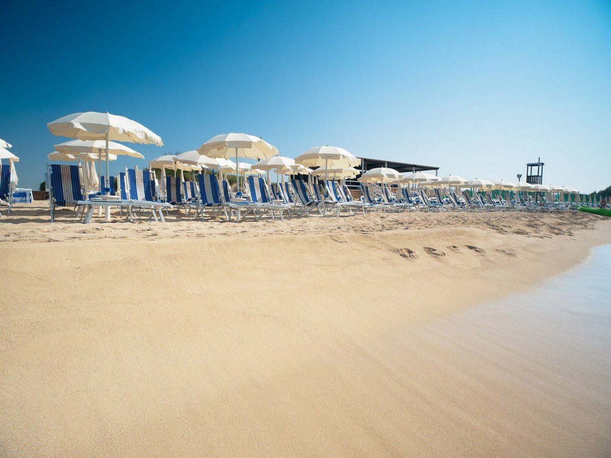 SPIAGGIA (dal 31 maggio al 27 settembre): bellissima spiaggia di sabbia con lido privato attrezzato con 1 ombrellone, 1 lettino e 1 sdraio per camera e/o appartamento (dalla 3° fila in poi). Dista ca 800 mt, raggiungibile con navetta che effettua un servizio continuativo, con sosta dalle 13:30 alle 14:00. Possibilità di utilizzo della sedia job. A 500 mt dal villaggio spiaggia libera di sabbia. A pagamento prima e seconda fila in spiaggia, su richiesta al momento della prenotazione. Disponibili canoe.