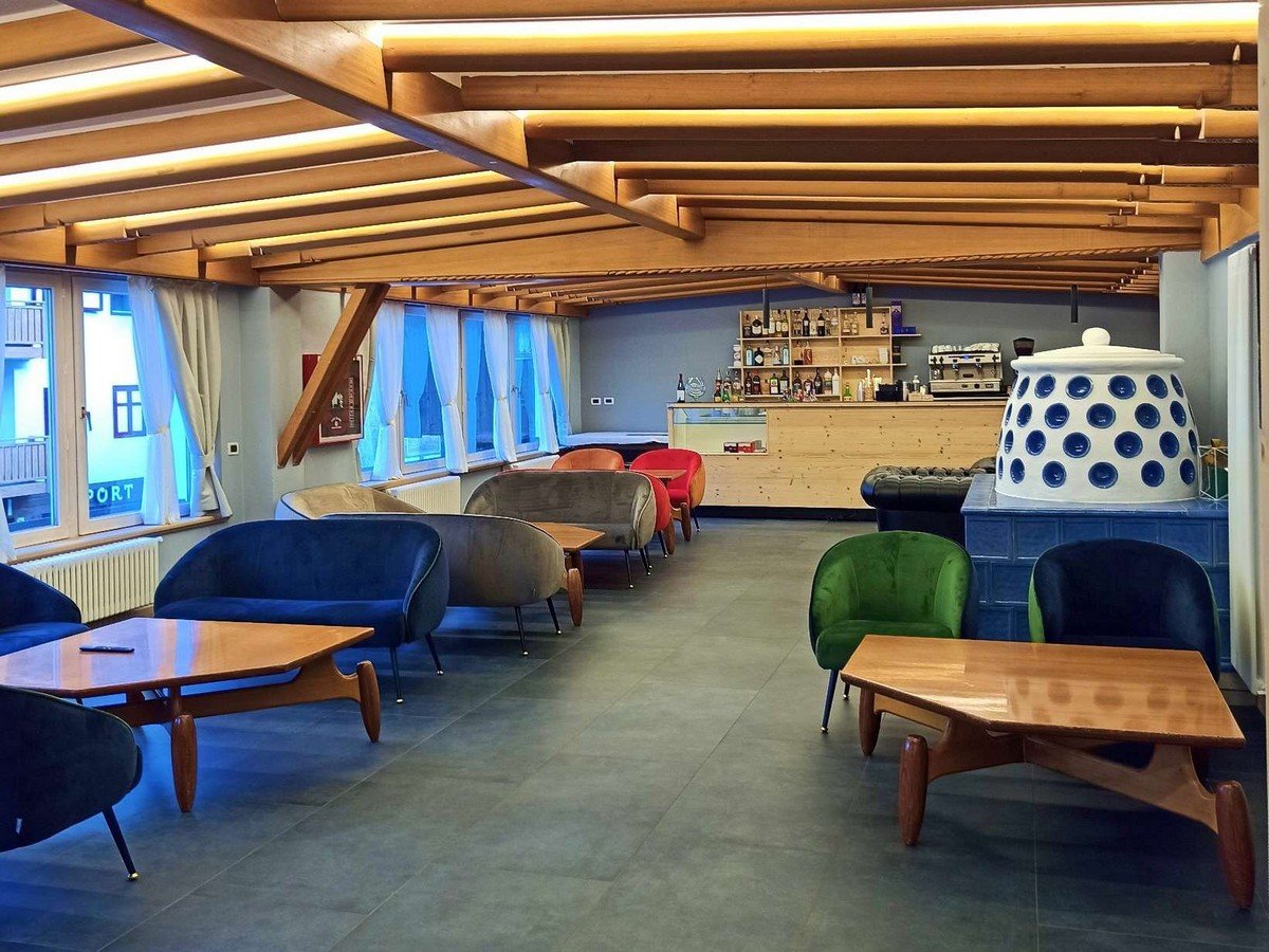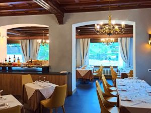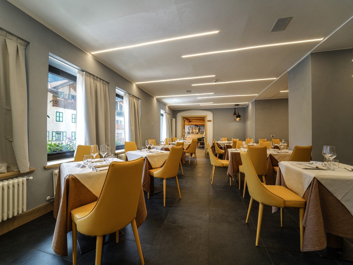 Il ristorante, dotato di ampie vetrate, si affaccia sul centro di Pozza di Fassa ed è realizzato in tipico stile trentino caratterizzato da tavoli e sedie in legno. Propone piatti tipici della tradizione locale e cucina internazionale con la possibilità di pietanze per intolleranze al glutine. Pranzo e cena con servizio al tavolo, bevande escluse.