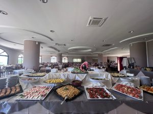 In posizione panoramica, con tavolo preassegnato (con eventuale riempimento con altre persone) e servizio a buffet (colazione, pranzo e cena). Per offrire un miglior servizio, a discrezione della Direzione, potrebbe esserci un turno anticipato o posticipato per il pranzo e/o la cena (vedi orari sotto indicati).