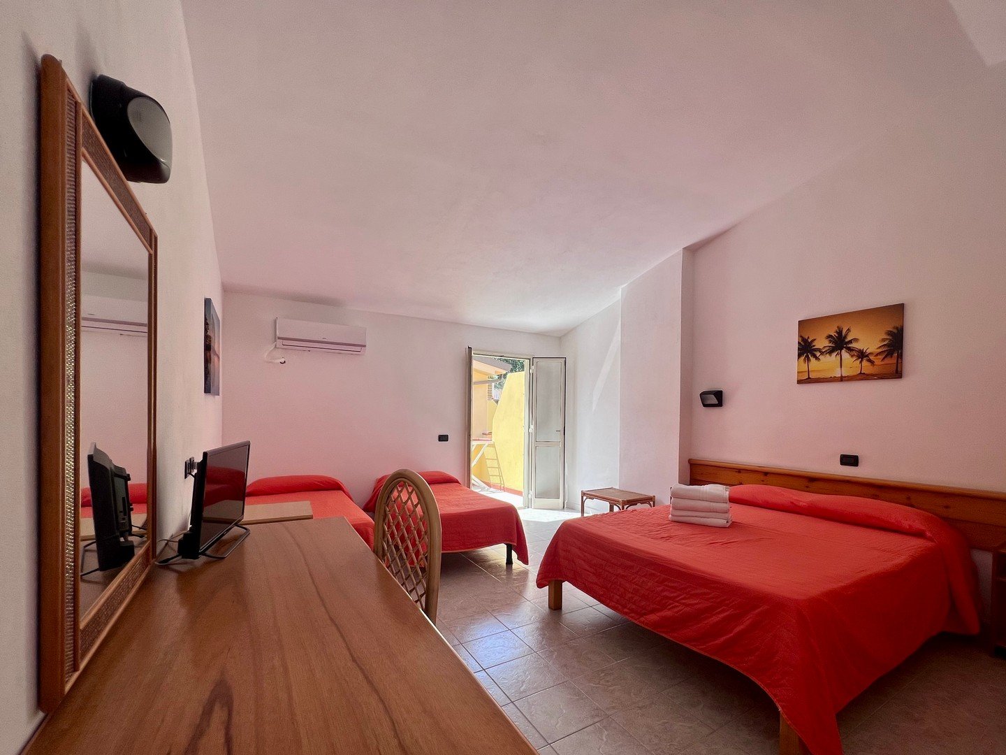 117 Standard: sono quasi tutte al piano terra, a 23 posti letto, camere quadruple al primo piano (con letti a castello o letti piani). Tutte le camere sono dotate di aria condizionata, servizi privati, TV, frigobar, asciugacapelli, cassaforte.