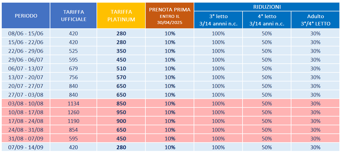 Tariffe in Pensione Completa. Il soggiorno inizia con la cena del giorno di arrivo e termina con la prima colazione del giorno di partenza.